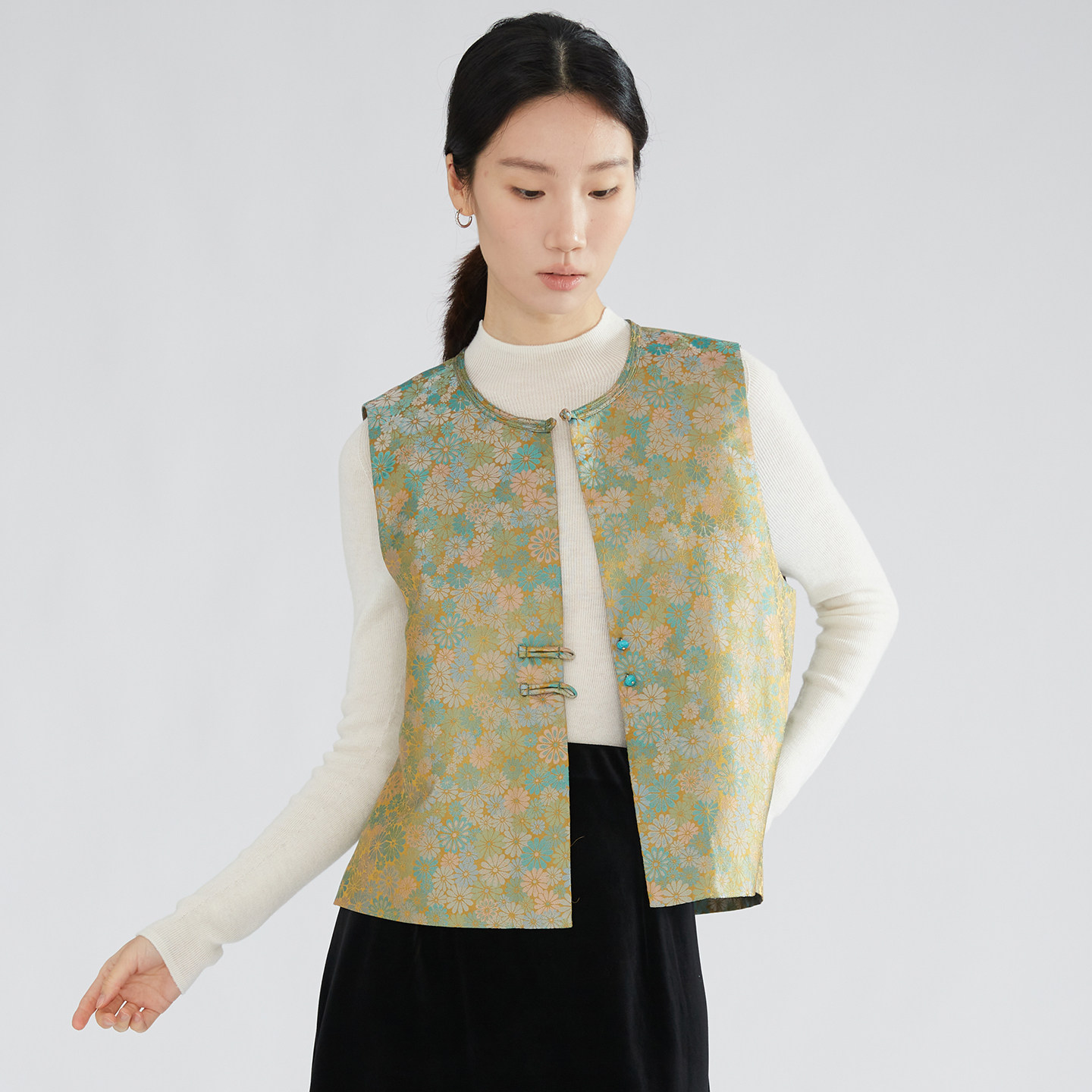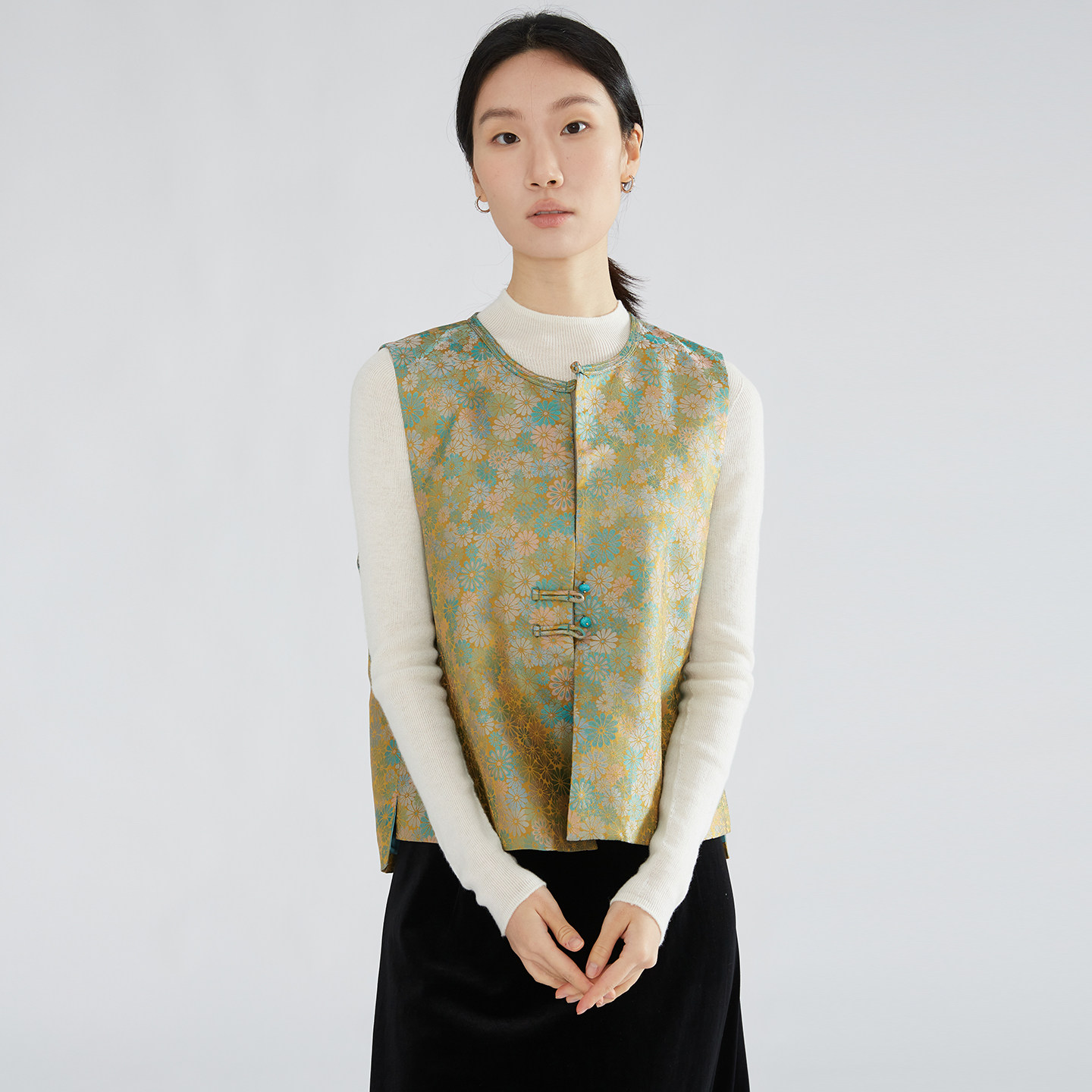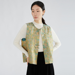 轻奢真丝宋锦100桑蚕丝非遗新中式 盘扣马甲国风宽松圆领坎肩春秋