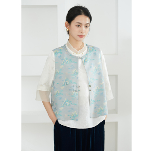 一丝牵轻奢真丝宋锦100%桑蚕丝新中式 马甲女国风宽松圆领坎肩春秋