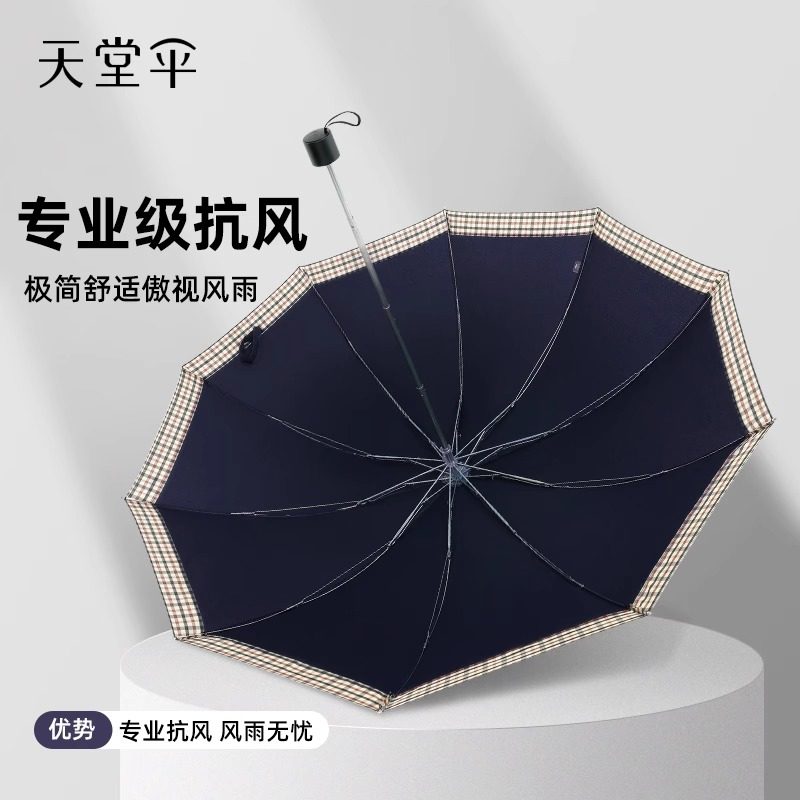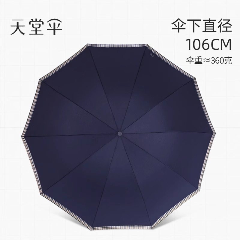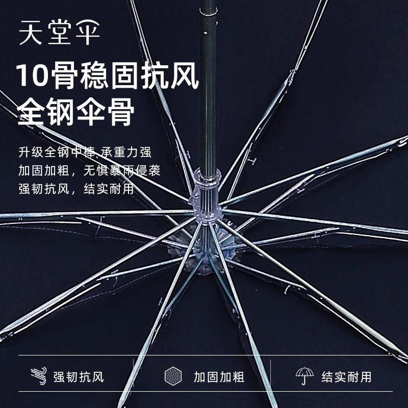 天堂伞全自动折叠便携黑胶防晒太阳伞遮阳伞加固晴雨伞两用男女士