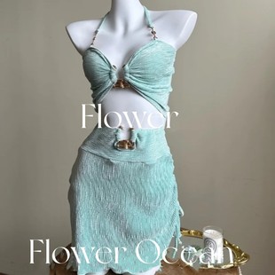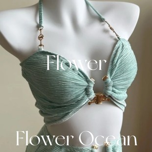 高级质感分体比基尼三件套海边度假泳衣 森林物语
