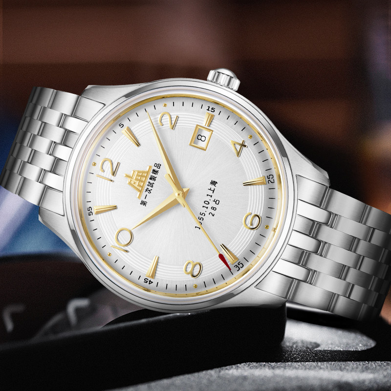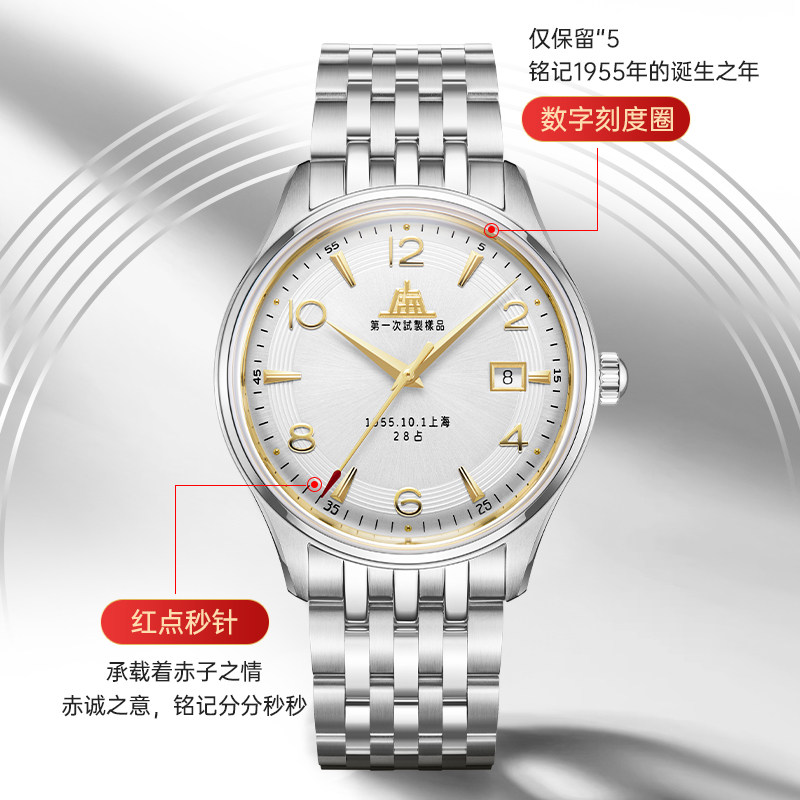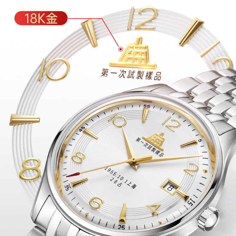 上海表70周年限定对表致敬1955复刻18K黄金大厦体情侣表结婚礼物