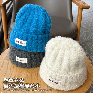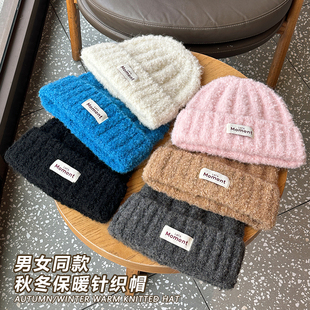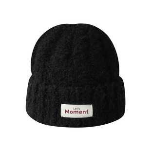 韩版 贴布针织帽秋冬加厚保暖毛线帽情侣百搭套头帽子软糯舒适 时尚