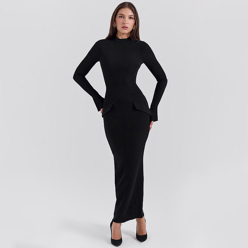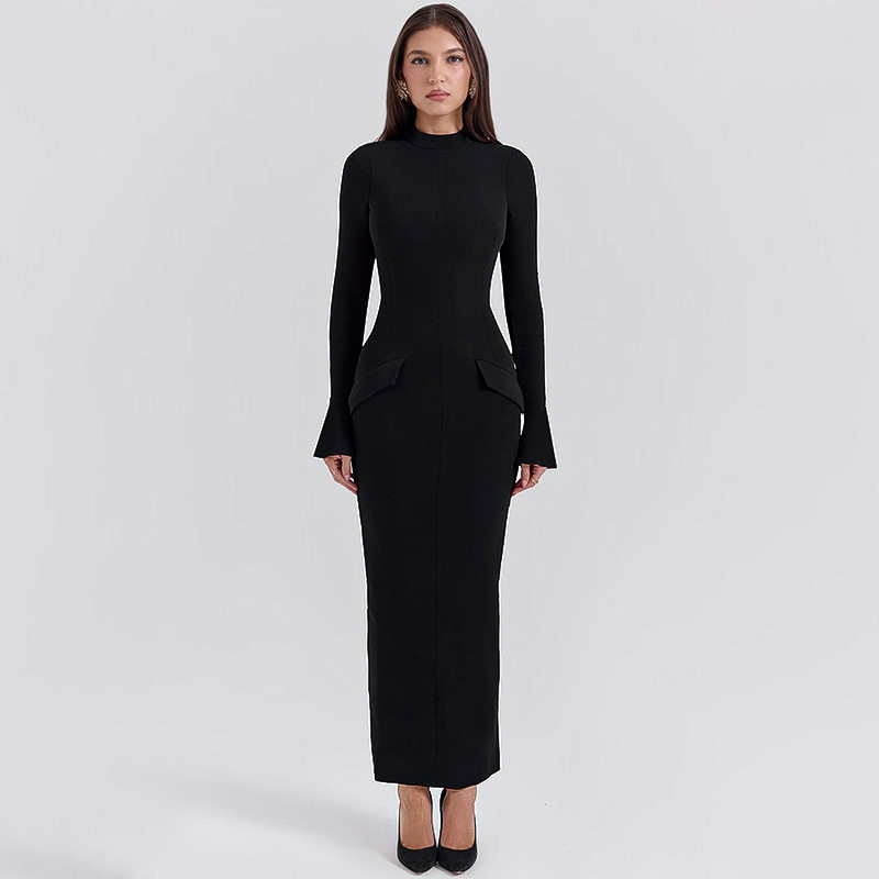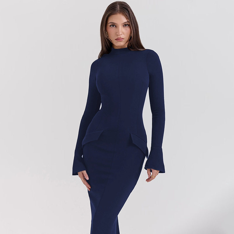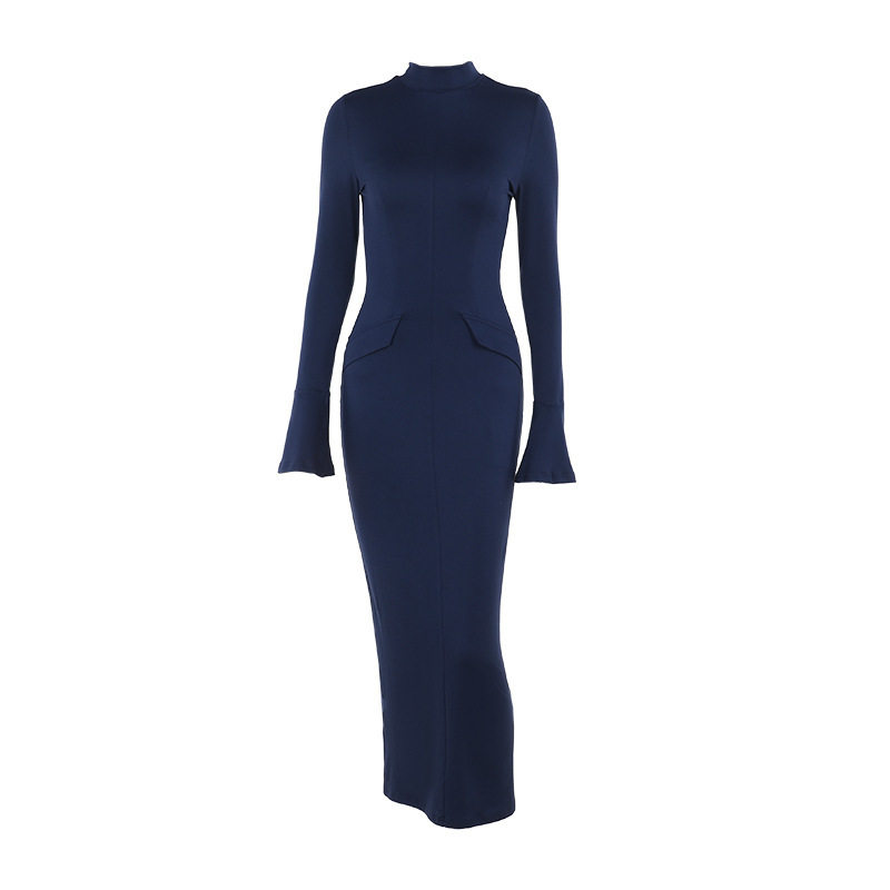 sleeved 连衣裙 bag 开叉长袖 修身 dress long slit lid fit Slim
