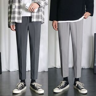 男黑色修身 裤 直筒九分加绒裤 子中年秋冬款 小西裤 休闲垂感长裤 西装