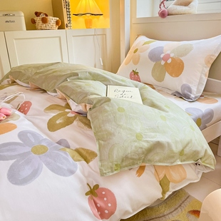 大学生宿舍床上三件套全棉纯棉床单被套寝室单人高中生90床笠款