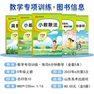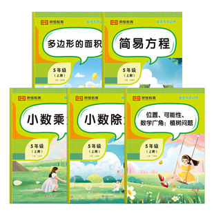五年级上册数学专项训练全套5册小学数学计算题强化训练人教版 课本同步练习册题小数乘除法思维训练简易方程口算题卡应用题天天练