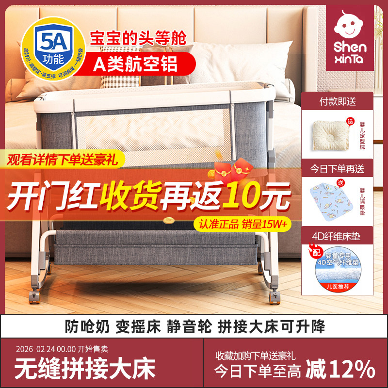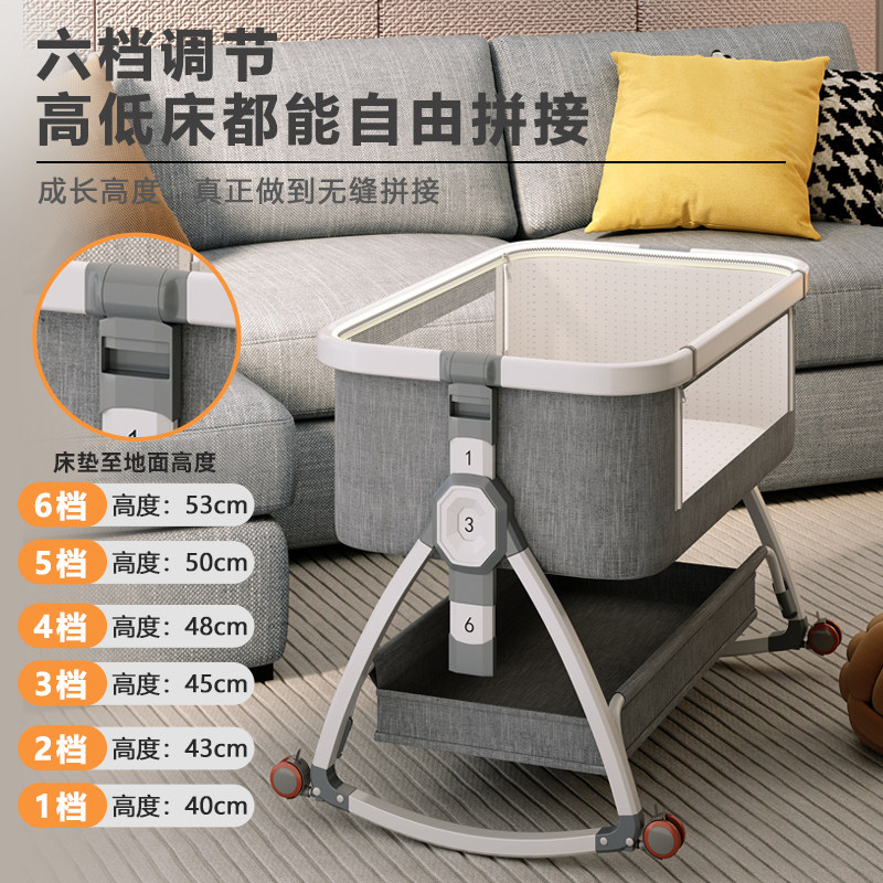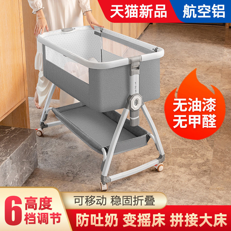 铝合金婴儿床可移动便携式 摇篮床可折叠多功能bb床新生儿拼接大床