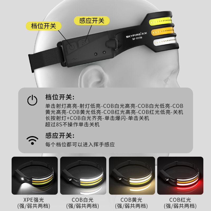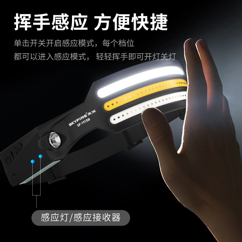 天火头灯强光超亮充电户外感应夜钓钓鱼专用头戴式 超长续航照明灯
