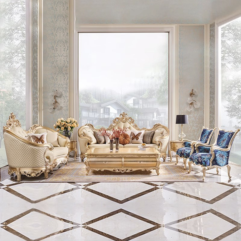 别墅高端实木沙发客厅组合欧式 宫廷风复古雕花皮艺真皮沙发 法式