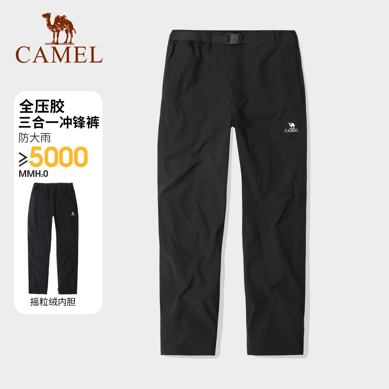 滑雪裤 骆驼户外冲锋裤 男三合一秋冬防风防水加绒加厚徒步登山长裤