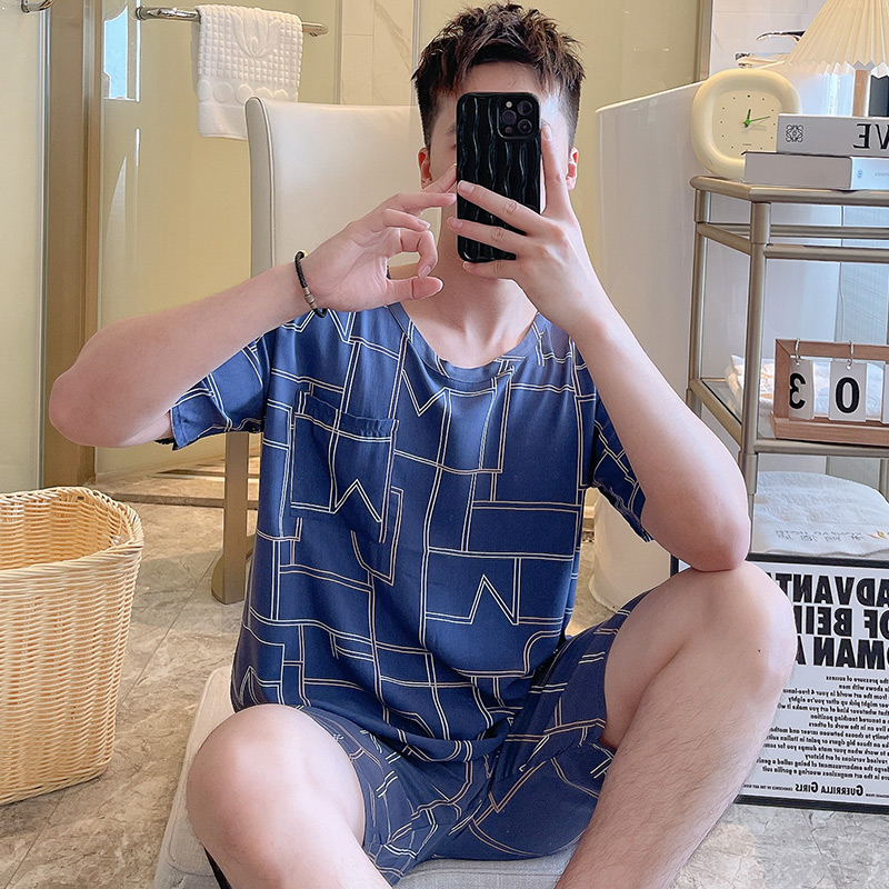 人造棉学生青少年男家居服套装 凉感男士 棉绸夏天薄款 短裤 睡衣短袖