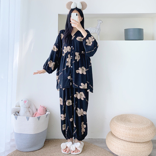 家居服 女秋冬休闲翻领可外穿长袖 JoyceBra 韩系豹纹德绒睡衣套装