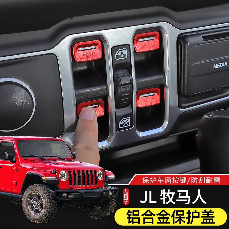 件中控拨杆装 牧马人JL车窗按键保护盖内饰改装 饰贴 25款 适用于18