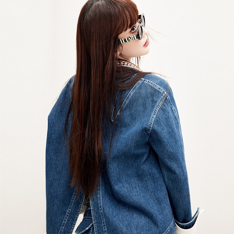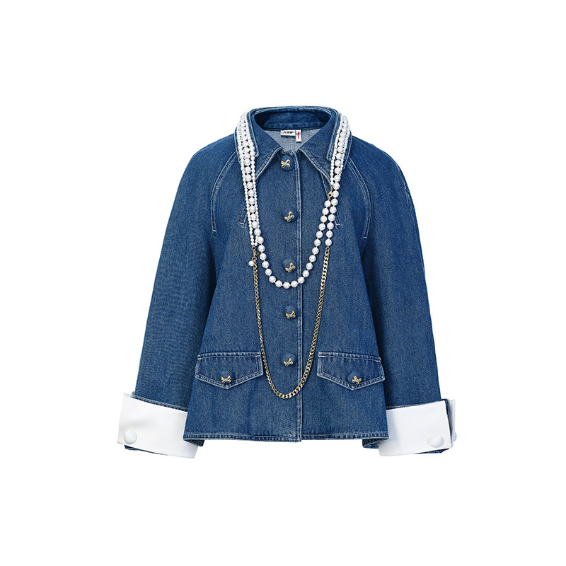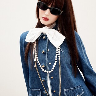 lefame拉飞姆2026春季 复古潮流珍珠链水洗牛仔短外套