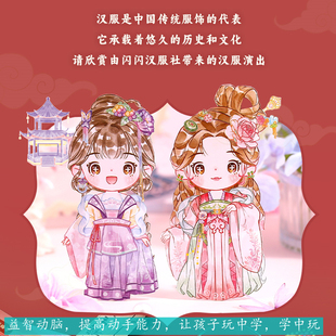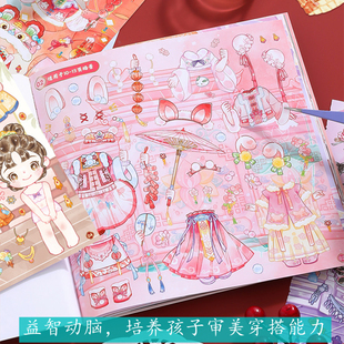 贴纸益智动脑DIY45678岁女孩生日礼物过家家换衣服游戏国潮风 国风少女换装 200 素材免剪裁可反复黏贴新中式