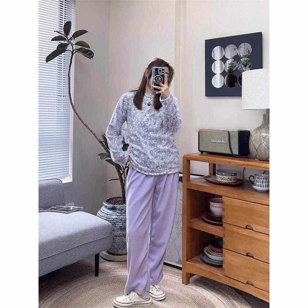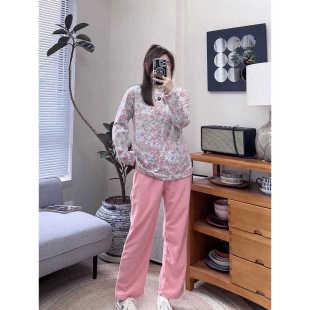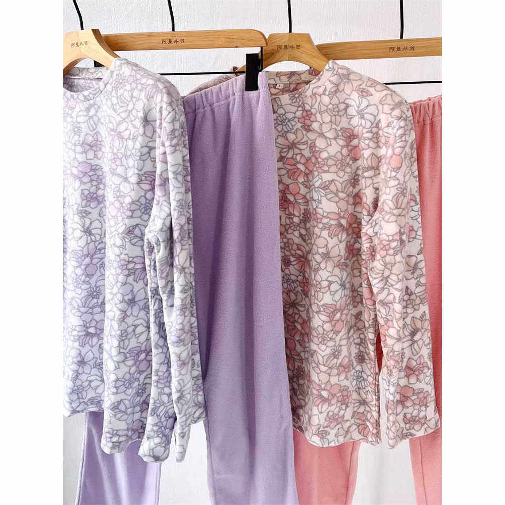 微瑕微脏摇粒绒睡衣套装 粉花 紫花