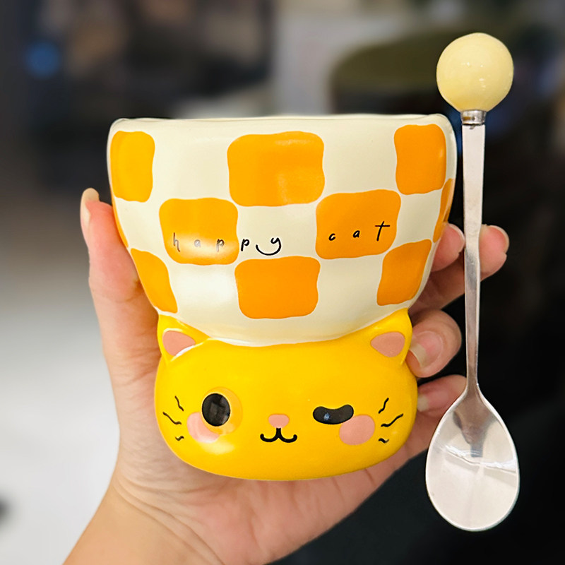 杯子陶瓷带盖带勺子马克杯家用女办公室水杯情侣咖啡早餐牛奶杯男