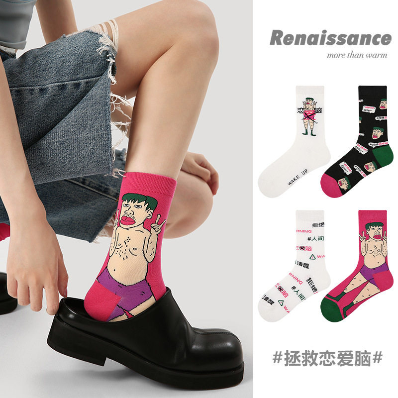 Renaissance原创拯救恋爱脑袜子女搞怪礼盒装 中筒袜卡通人物潮袜
