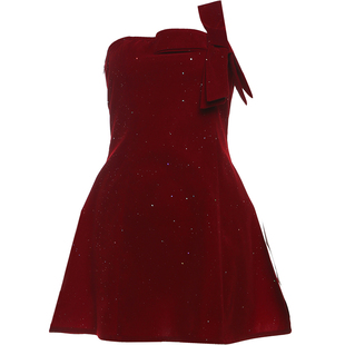 歌莉娅红色连衣裙女秋冬新年战袍2025新款 订婚礼服裙跨年穿搭裙子