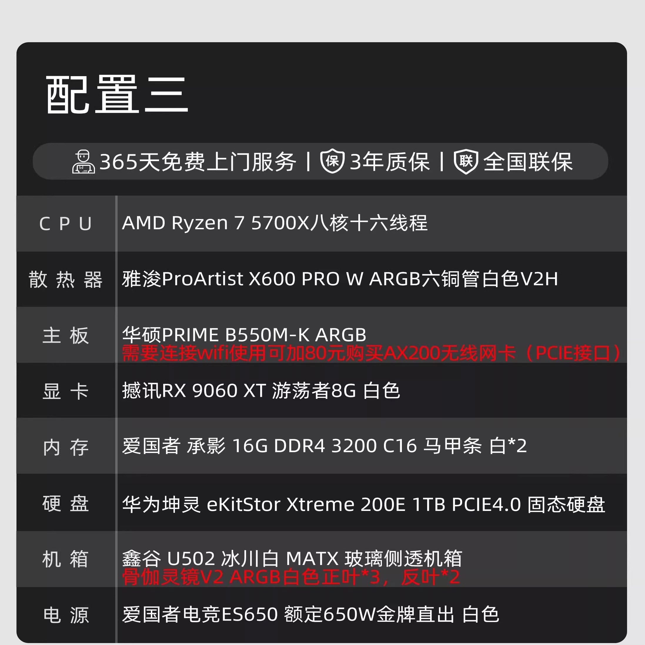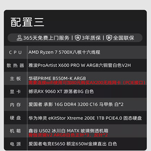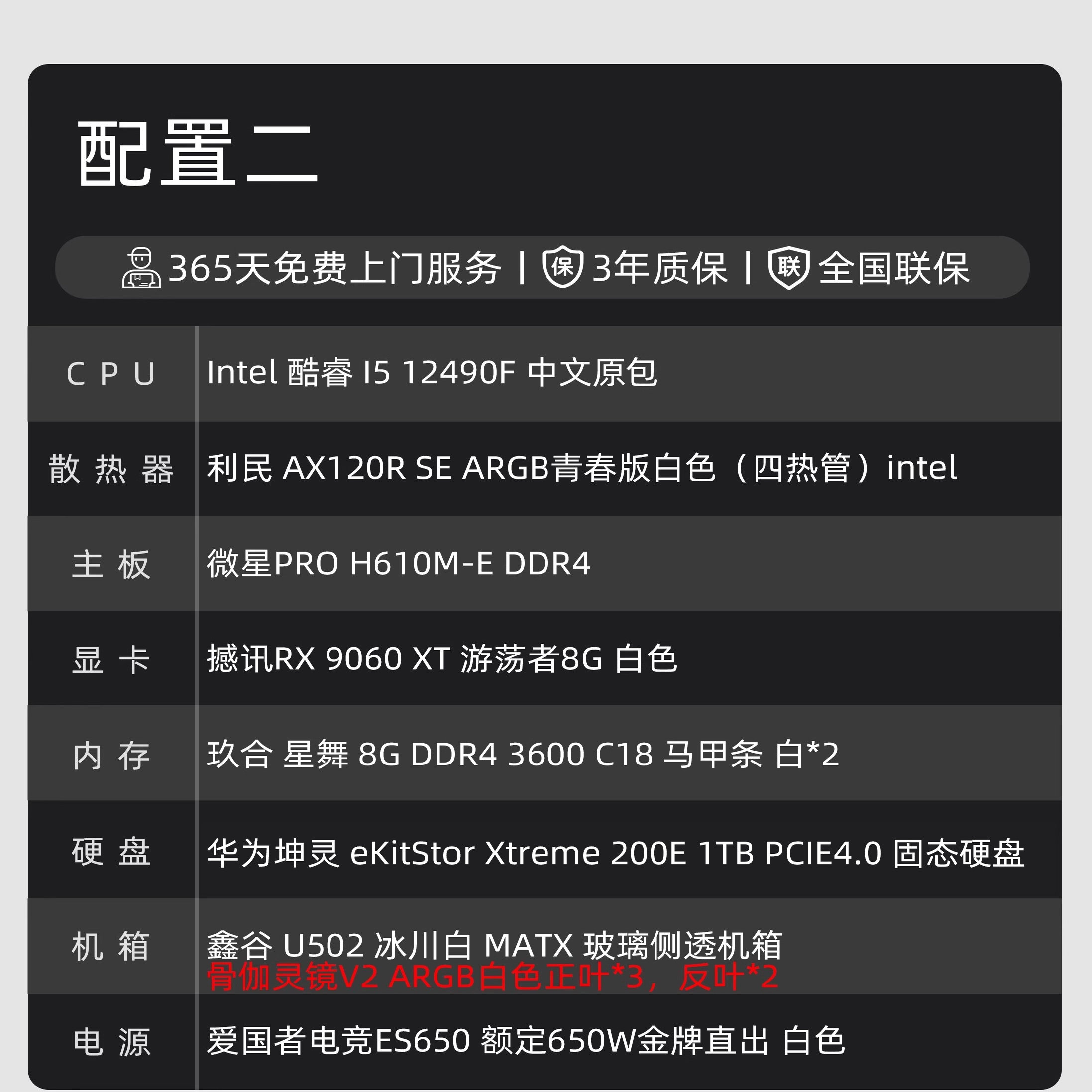 13400F 5600 12600KF电竞游戏主机 9060XT白色海景房主机