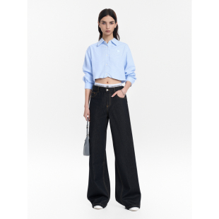 翻领宽松休闲蓝色条纹长袖 女2026春夏新款 上衣 Back短衬衫 Called