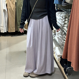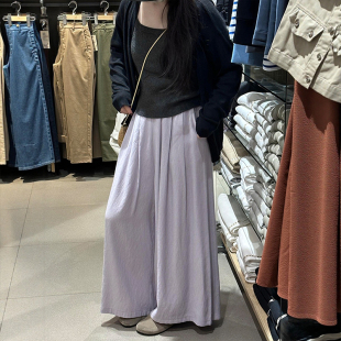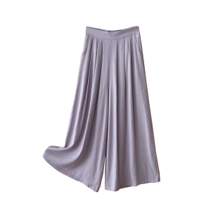 胖mm宽松慵懒风亚麻休闲长裤 紫色棉麻阔腿裙裤 大码 春新款 裙 子女款