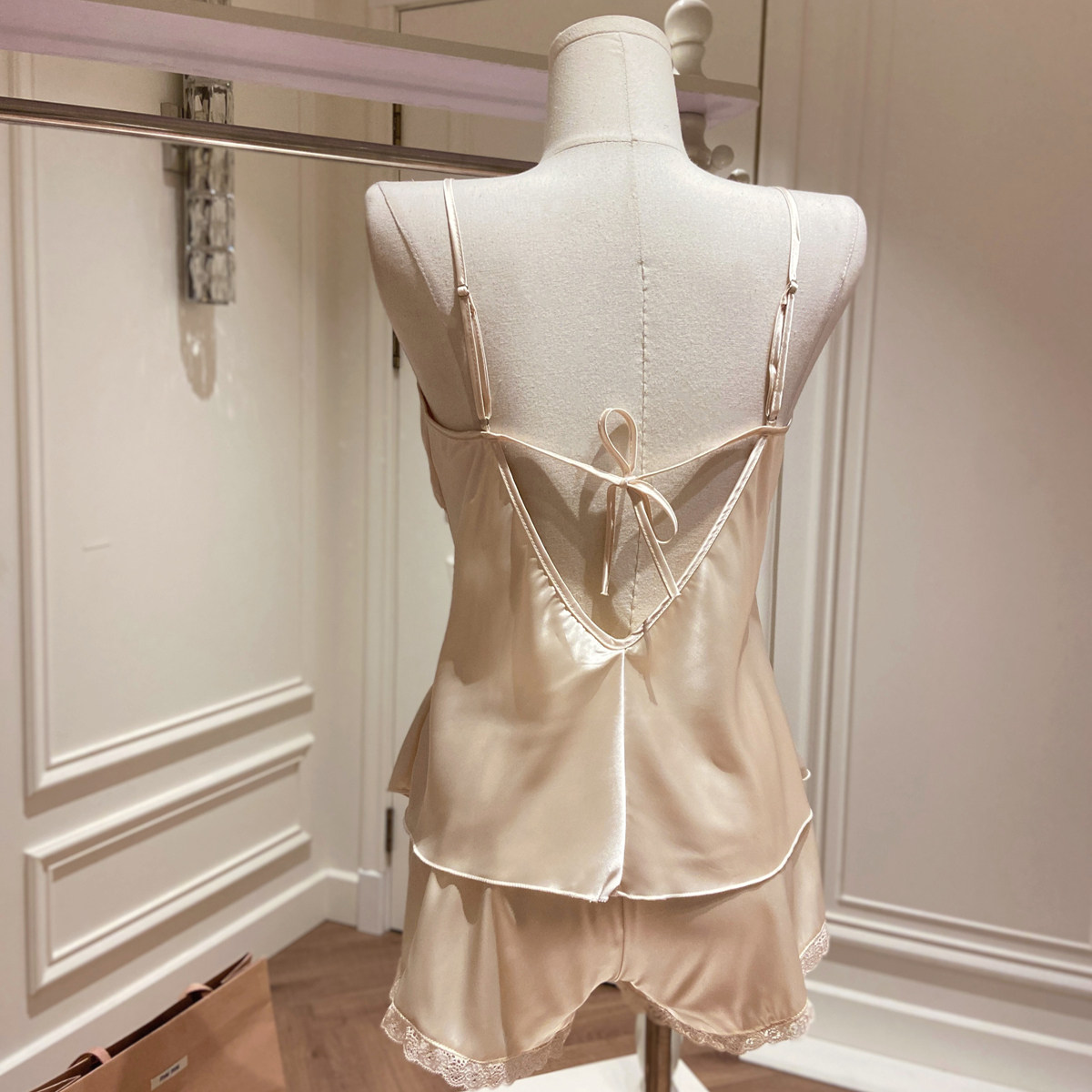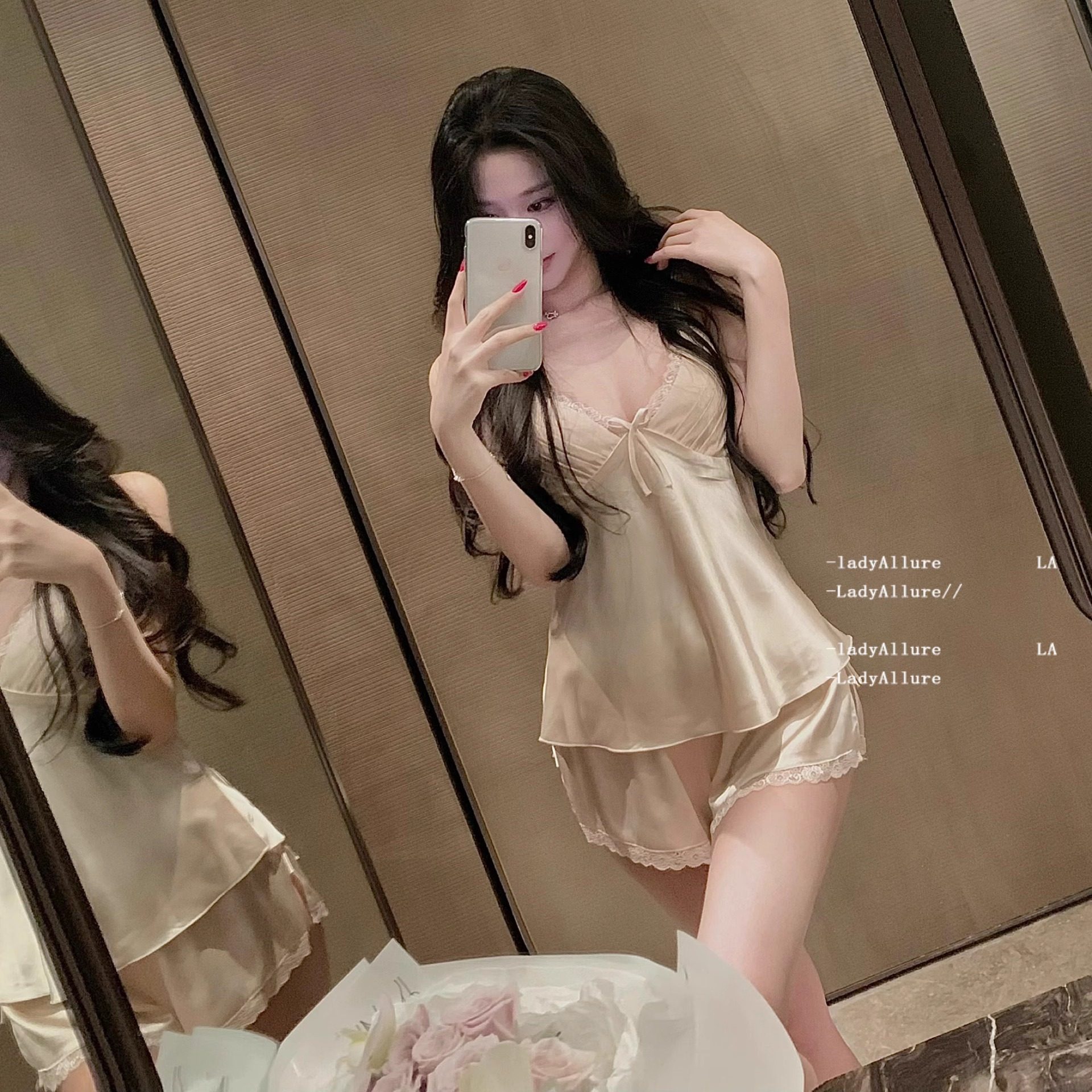 家居服套装 「LA」粉洛佳人 轻奢纯欲禁欲高感深V领吊带睡衣女薄款