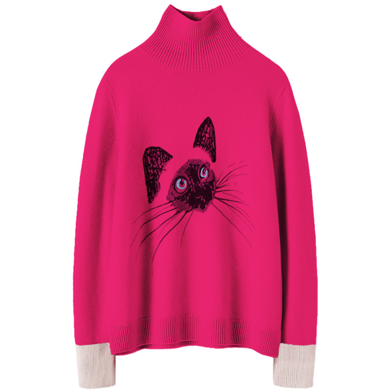 针织打底衫 品牌高级感羊毛衫 女半高领宽松毛衣秋冬加厚羊绒长袖