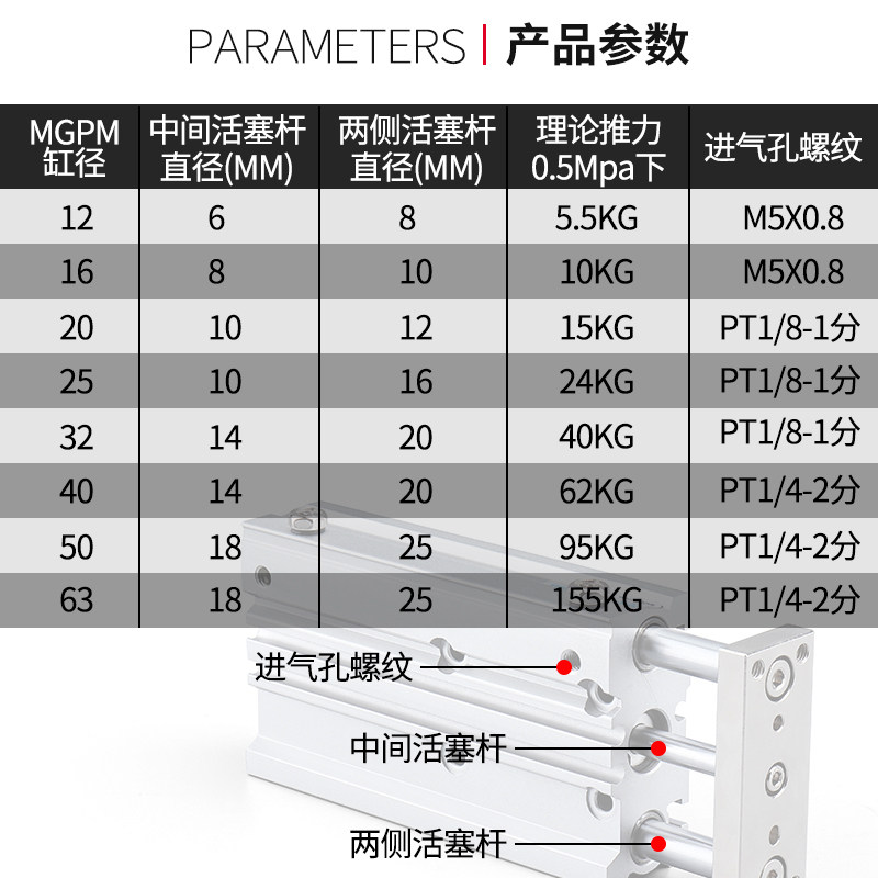 100S 50X75 TN双轴双杆气缸小型气动气缸大推力10x16x20x25x32
