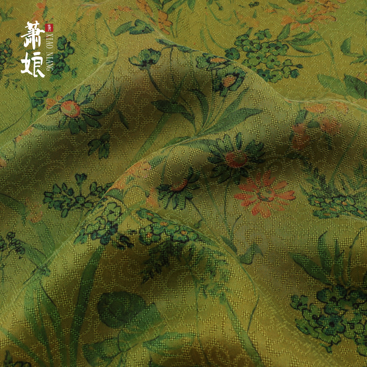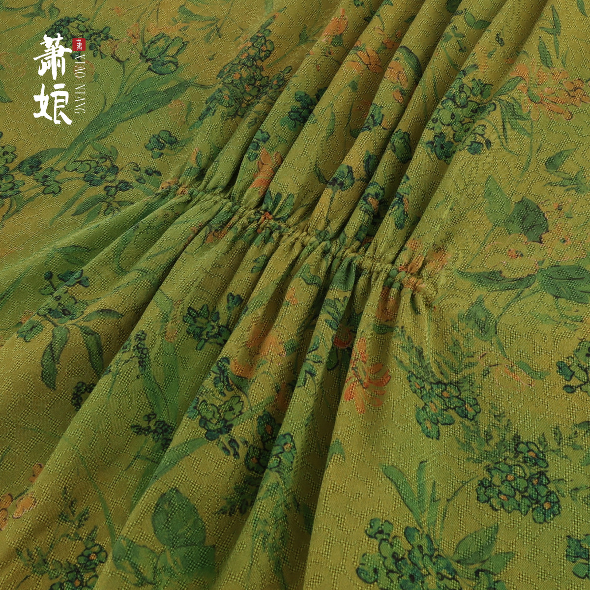 女V领桑蚕丝长裙5223 花罗香云纱连衣裙新中式 萧娘 春和景明