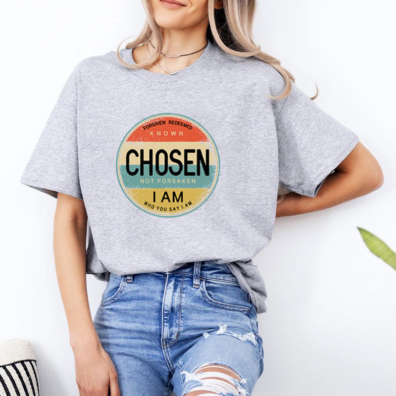 Bible Shirt十字架印花女短袖 Religious 纯棉 Christian Chosen