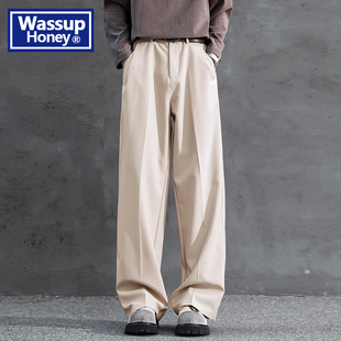 子男士 春夏新款 青年男款 WASSUP 长裤 裤 垂感休闲裤 子 Honey直筒西装