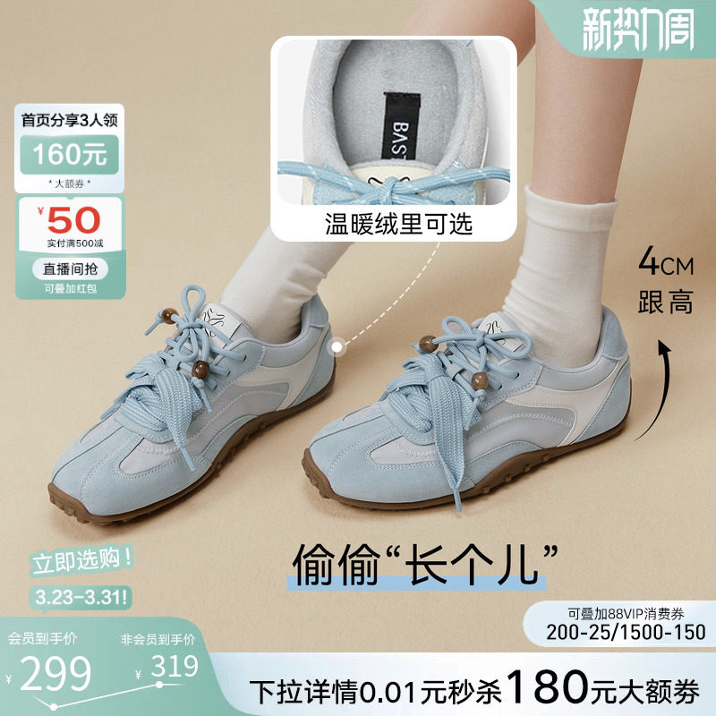 运动休闲鞋 百搭真皮红色德训鞋 百思图26春商场新款 女 薄荷软糖