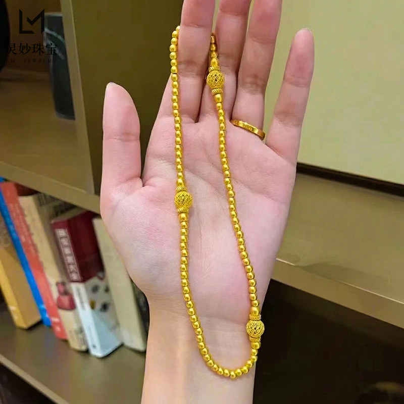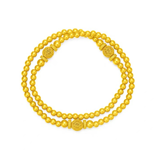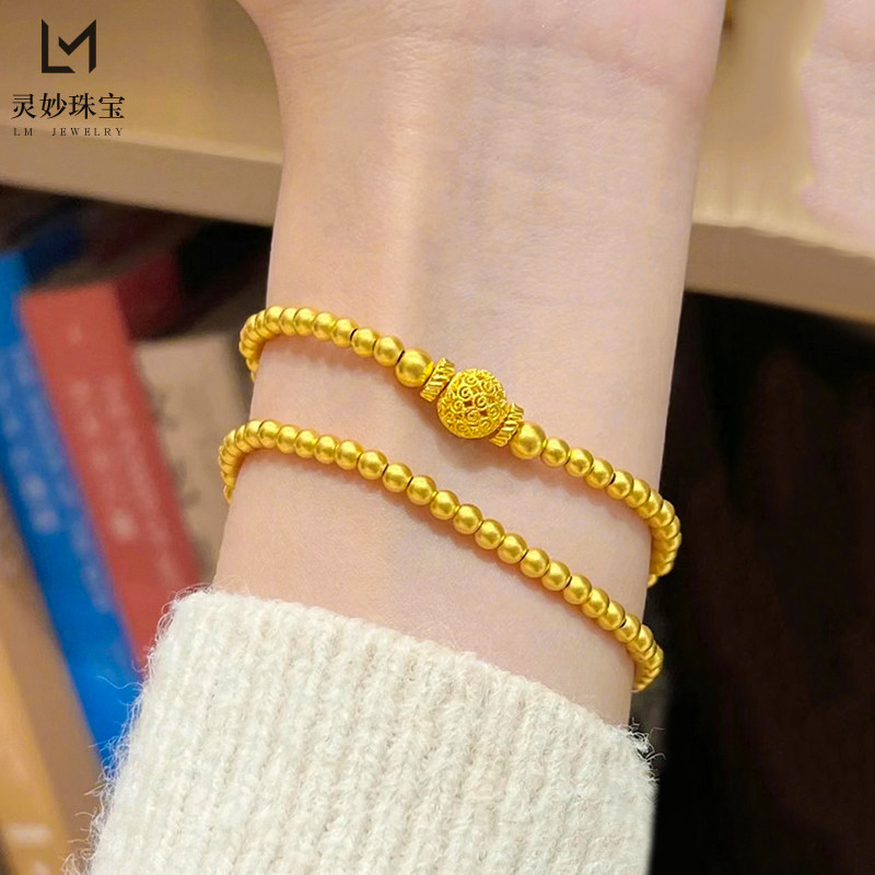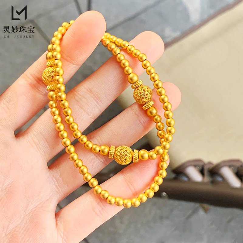 金店同款 古法沙金999镂空花丝圆珠双圈手串传承手链复古送女友礼