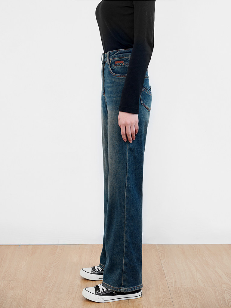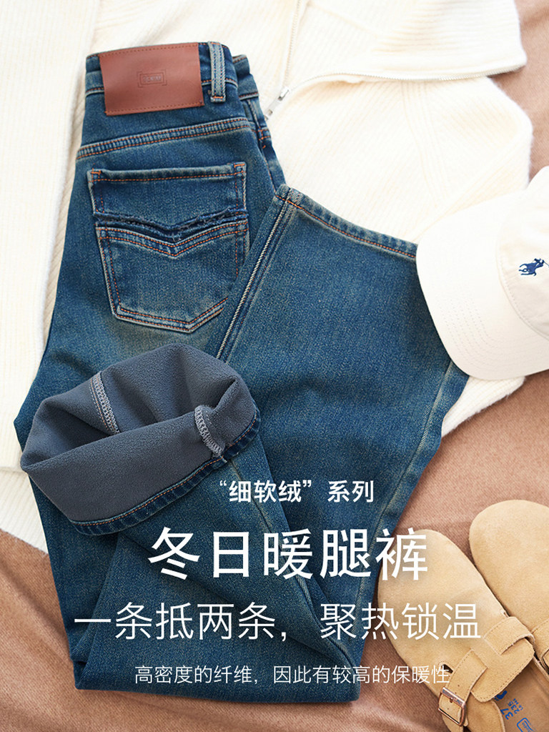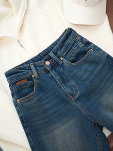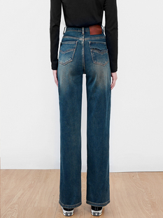 宽松显瘦直筒垂感拖地裤 SJOG厚绒窄版 新款 女高腰24冬季 阔腿牛仔裤