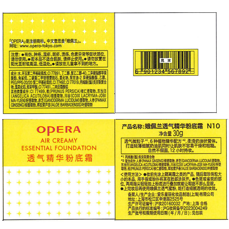 Opera 娥佩兰粉底霜轻薄透气粒子精华粉底液遮瑕持久不脱妆保湿