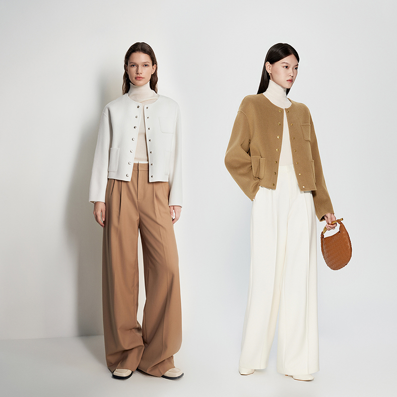 小香风单排扣圆领减龄羊毛呢外套 韩版 双面羊绒大衣女短款 2025新款