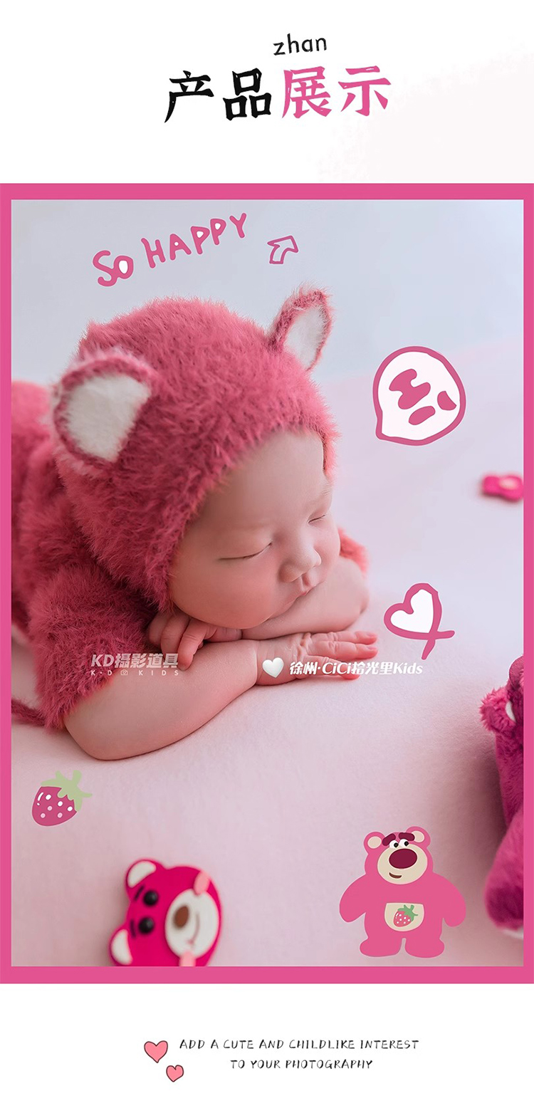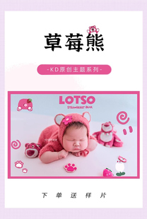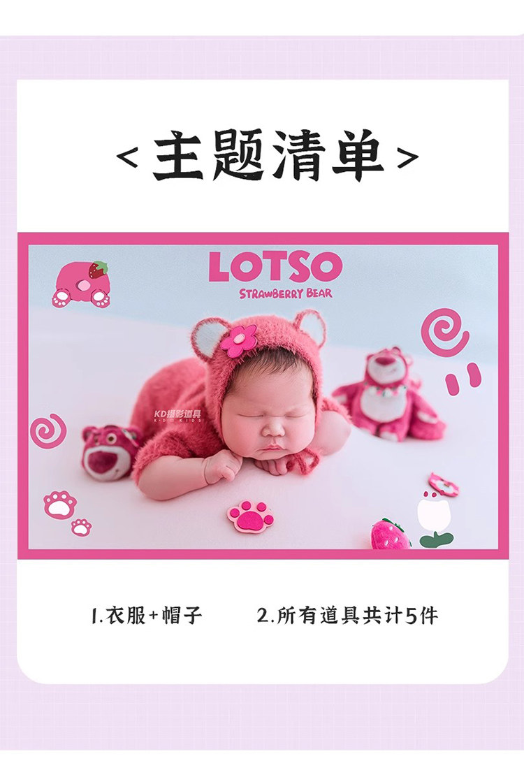 萌宝婴儿拍照草莓熊衣服主题套装 新生儿摄影可爱卡通玩偶道具女孩