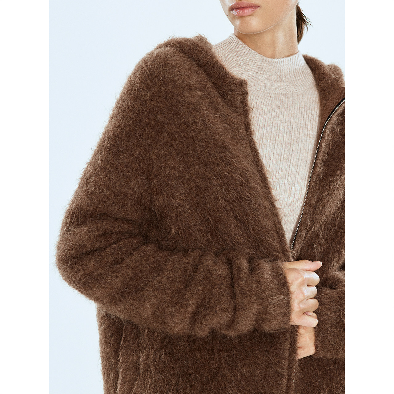 COVERINS 慵懒风宽松拉链连帽毛衣外套女CC34106090 贝贝羊驼毛