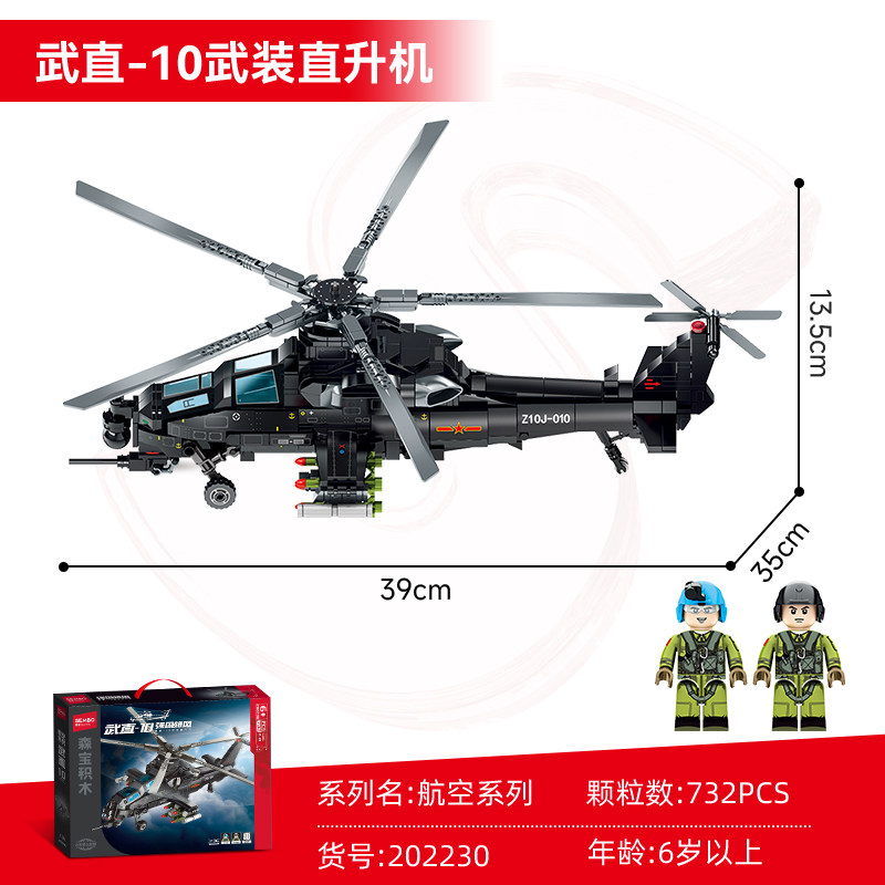 森宝积木陆军型武直10直升机模型飞机航模儿童军事文创拼装 玩具