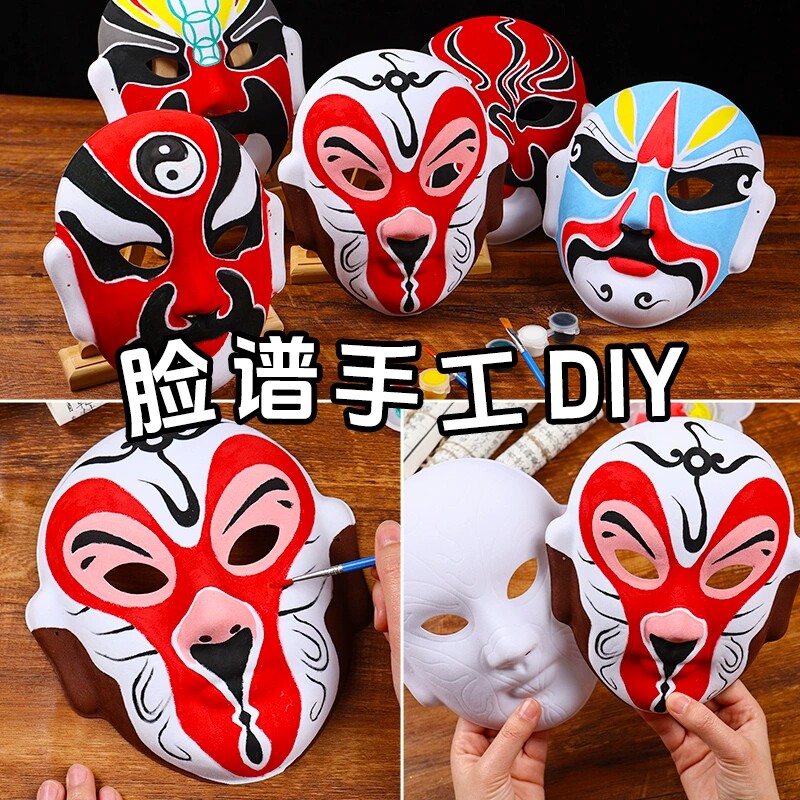 京剧diy脸谱手工空白面具白胚幼儿园装 饰儿童节手绘画国潮开学季