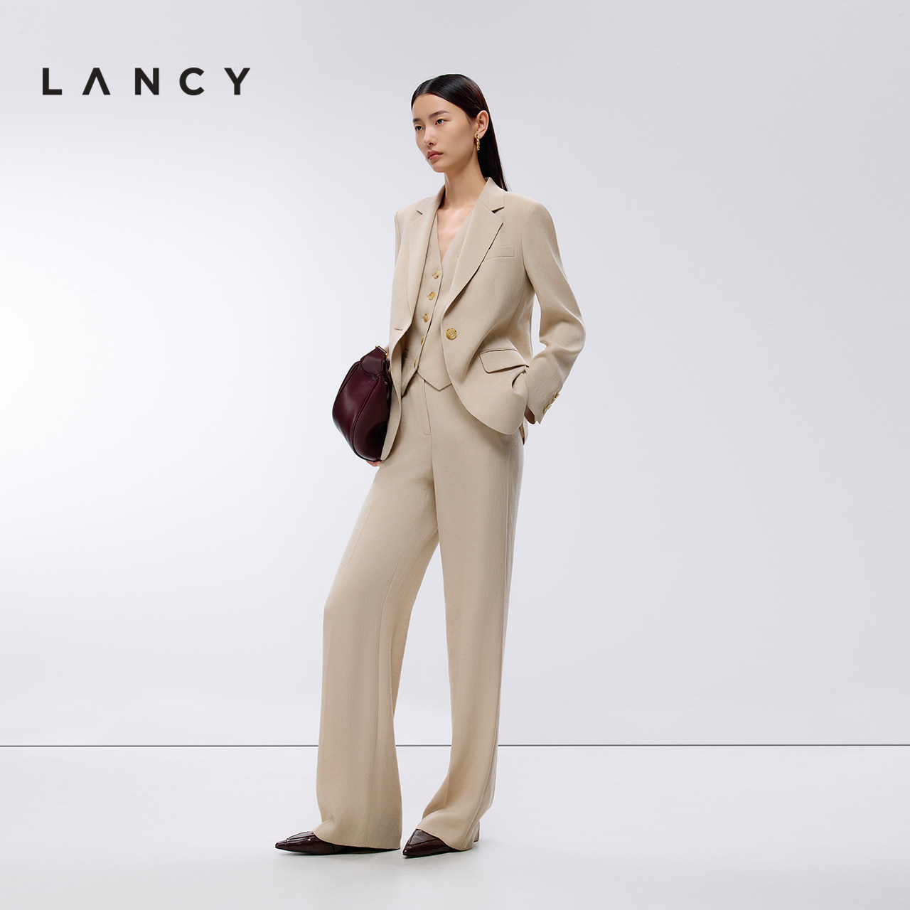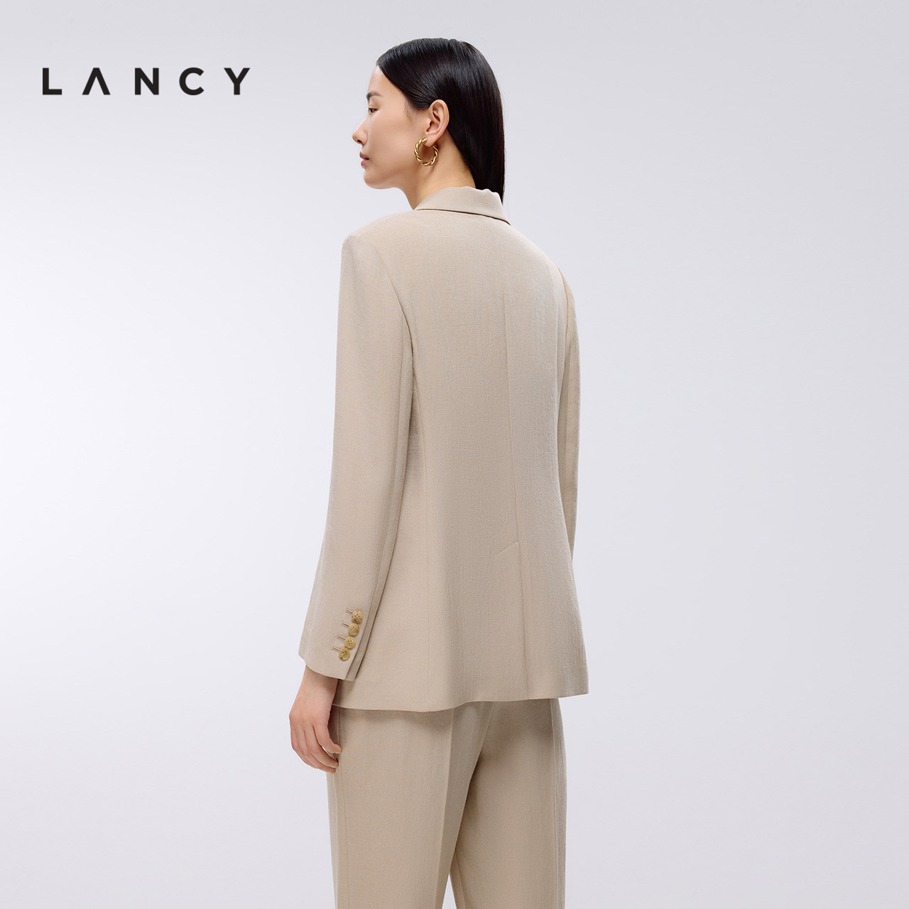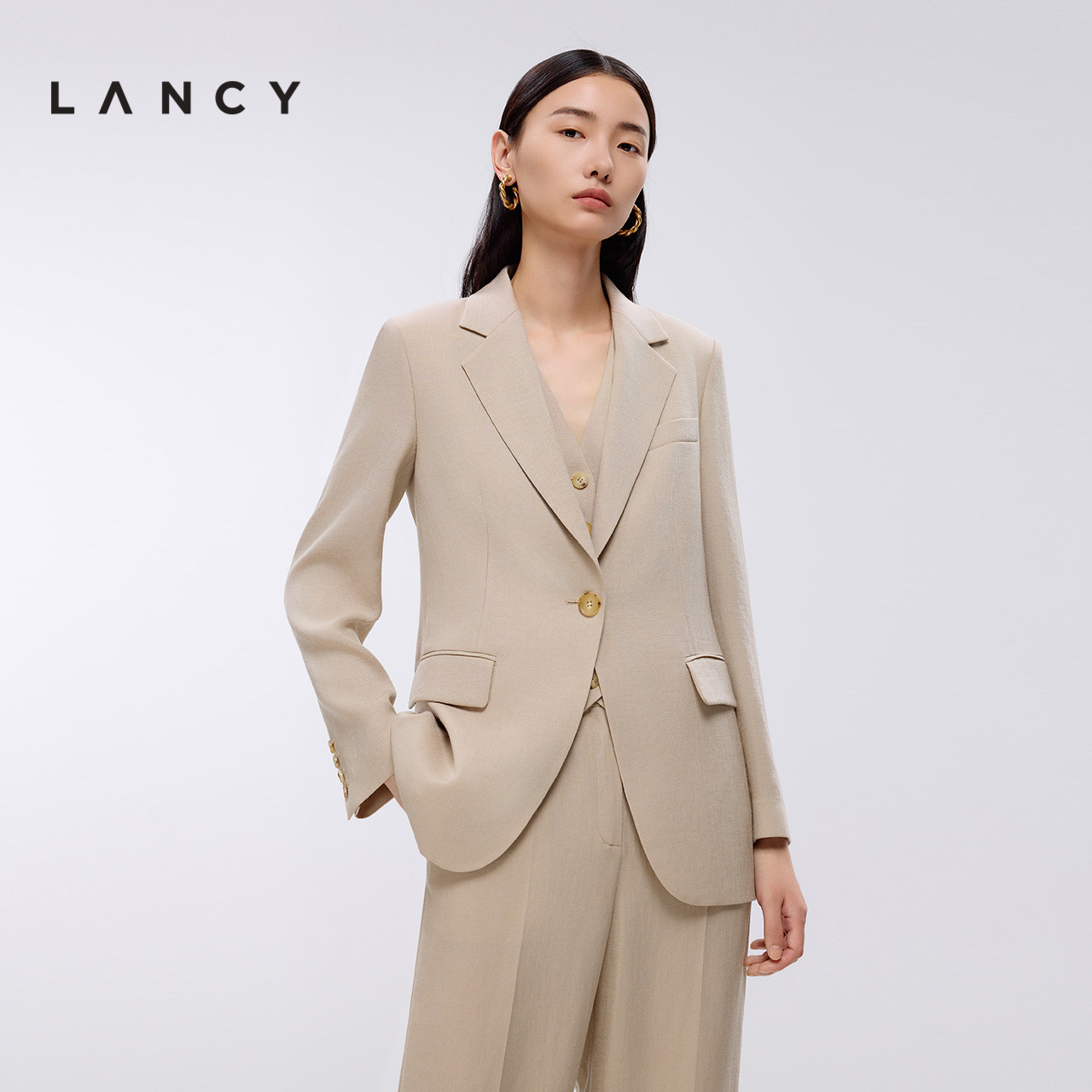 女通勤职业外套 高级气质三醋酸一粒扣西装 LANCY 朗姿2025年春新款