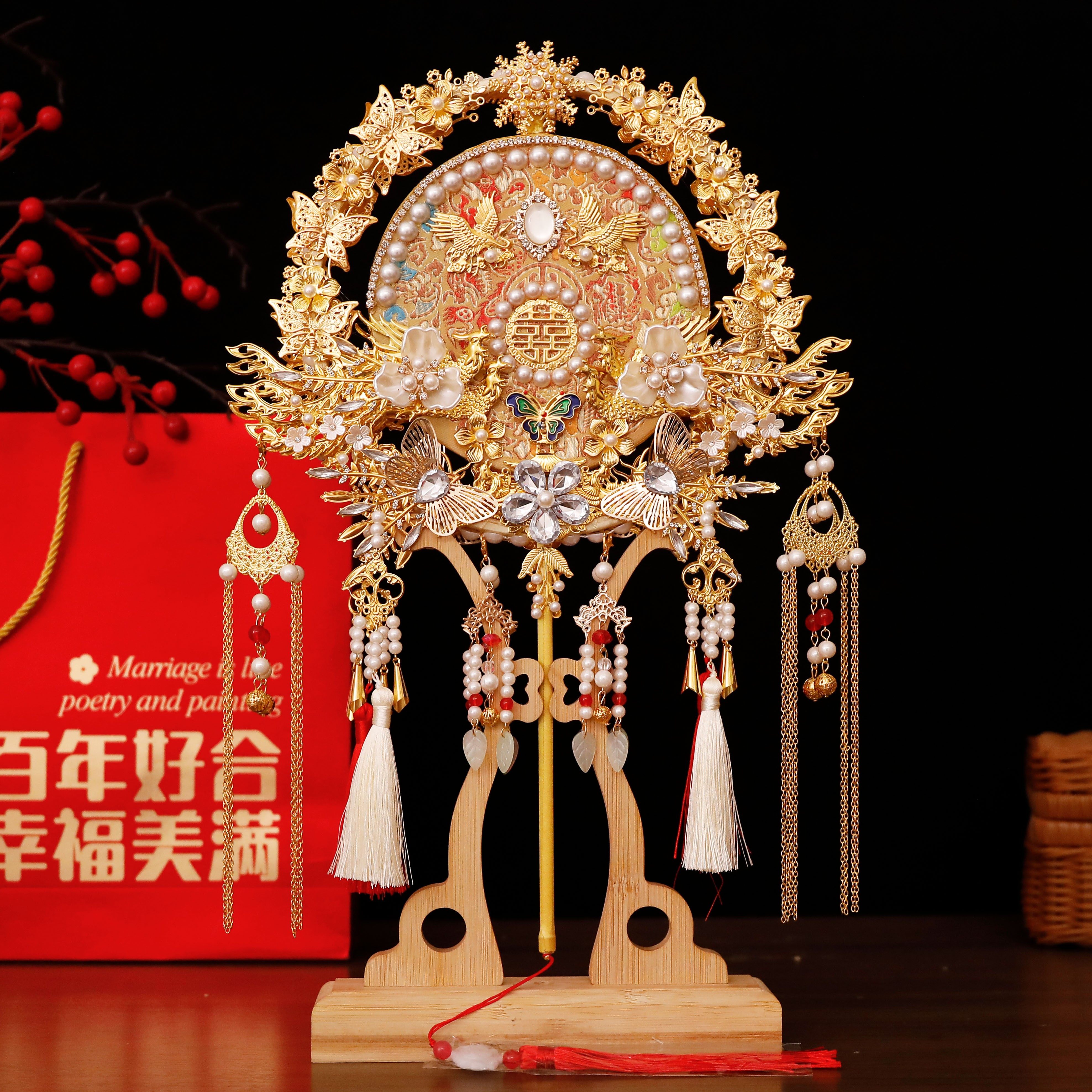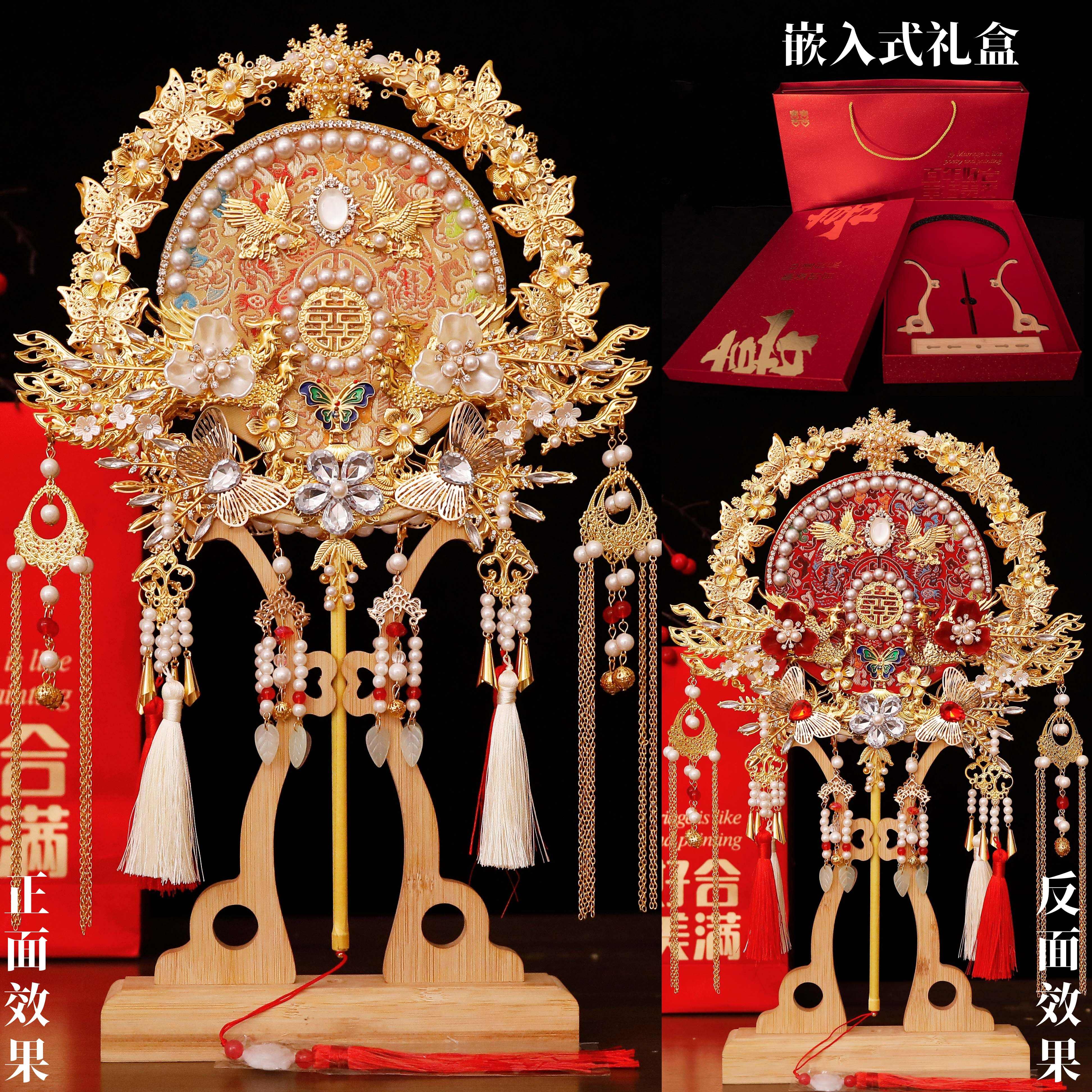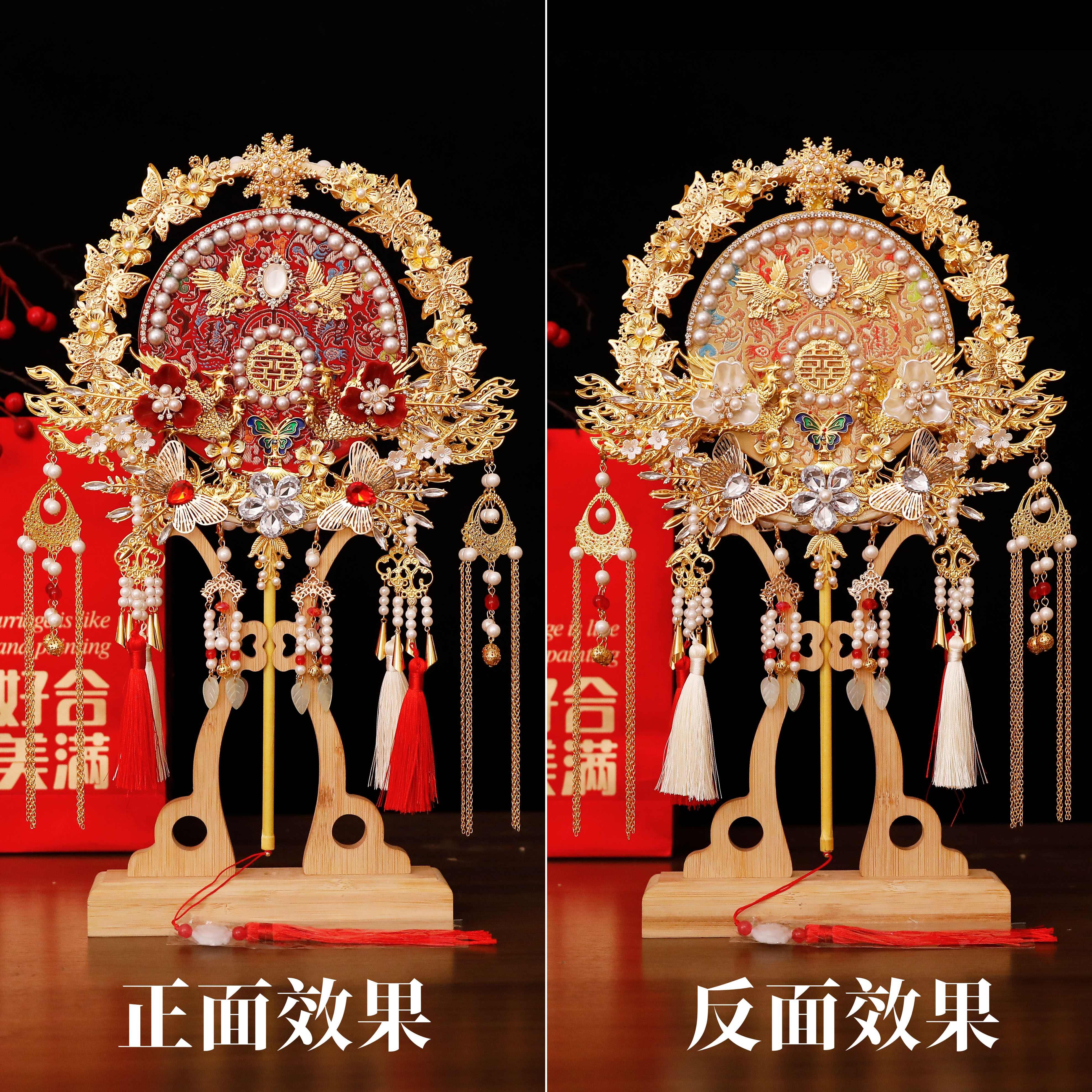 团扇新娘结婚喜扇材料包diy秀禾手工双面高级婚礼婚扇子成品出嫁