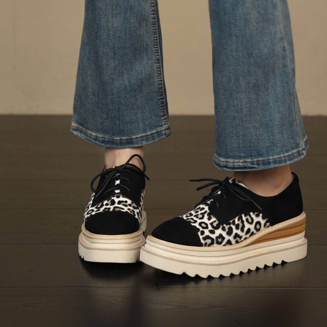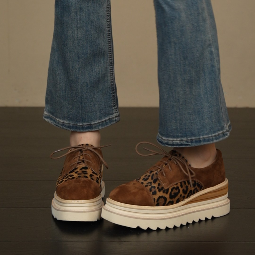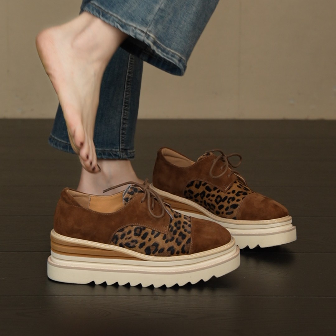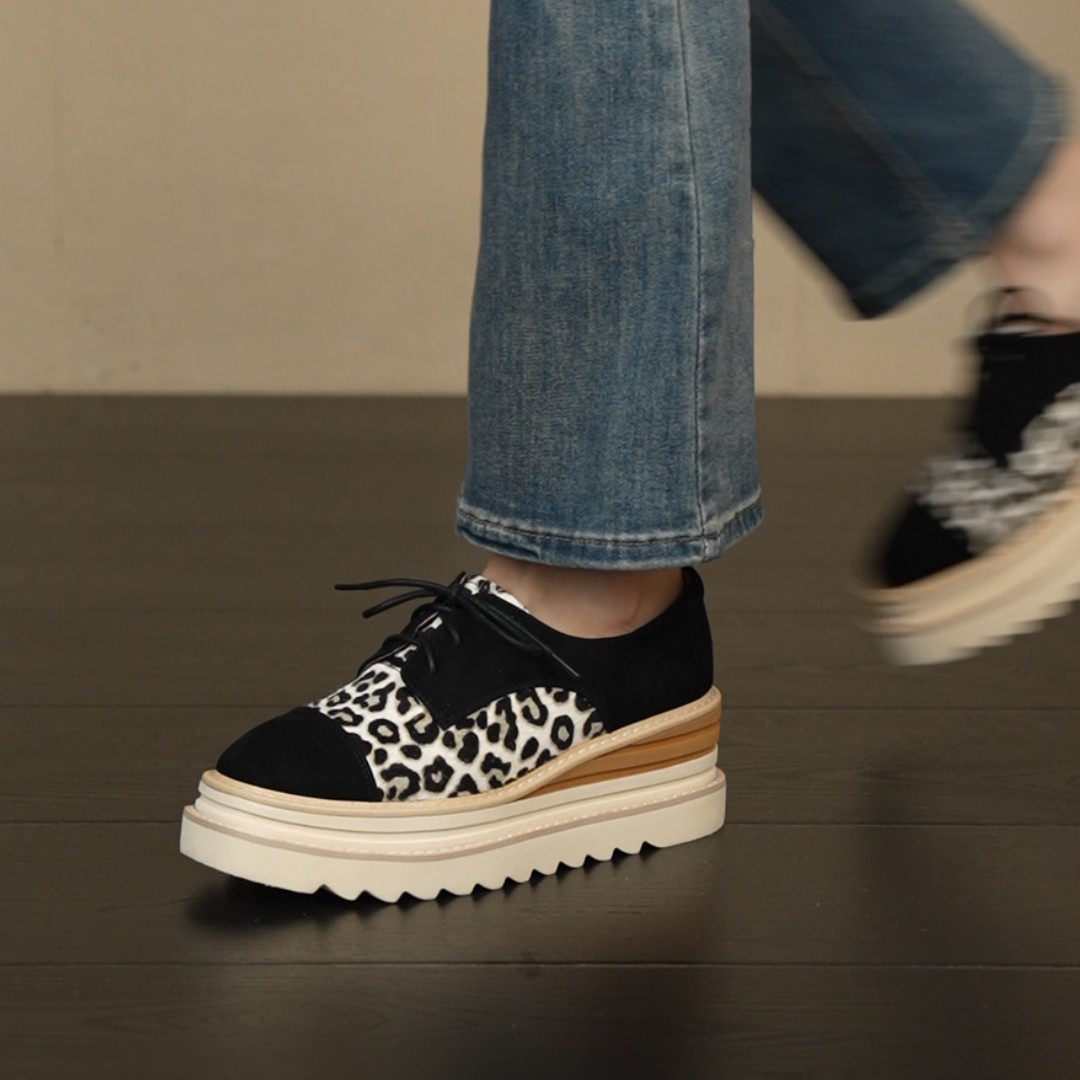 6cm坡跟厚底圆头拼色豹纹系带小个子通勤乐福鞋 NNMISS·34