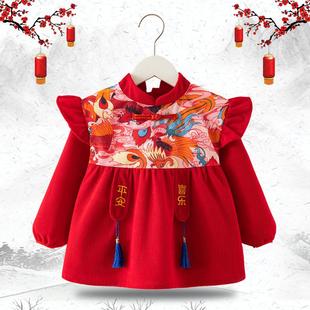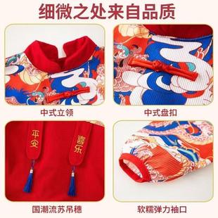 吃饭围兜 防水防脏春节新款 宝宝罩衣中国风儿童拜年服冬季 加绒唐装