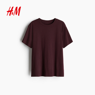 宽松圆领简约柔软汗布棉质内搭上衣0963662 新款 HM女装 T恤2025冬季