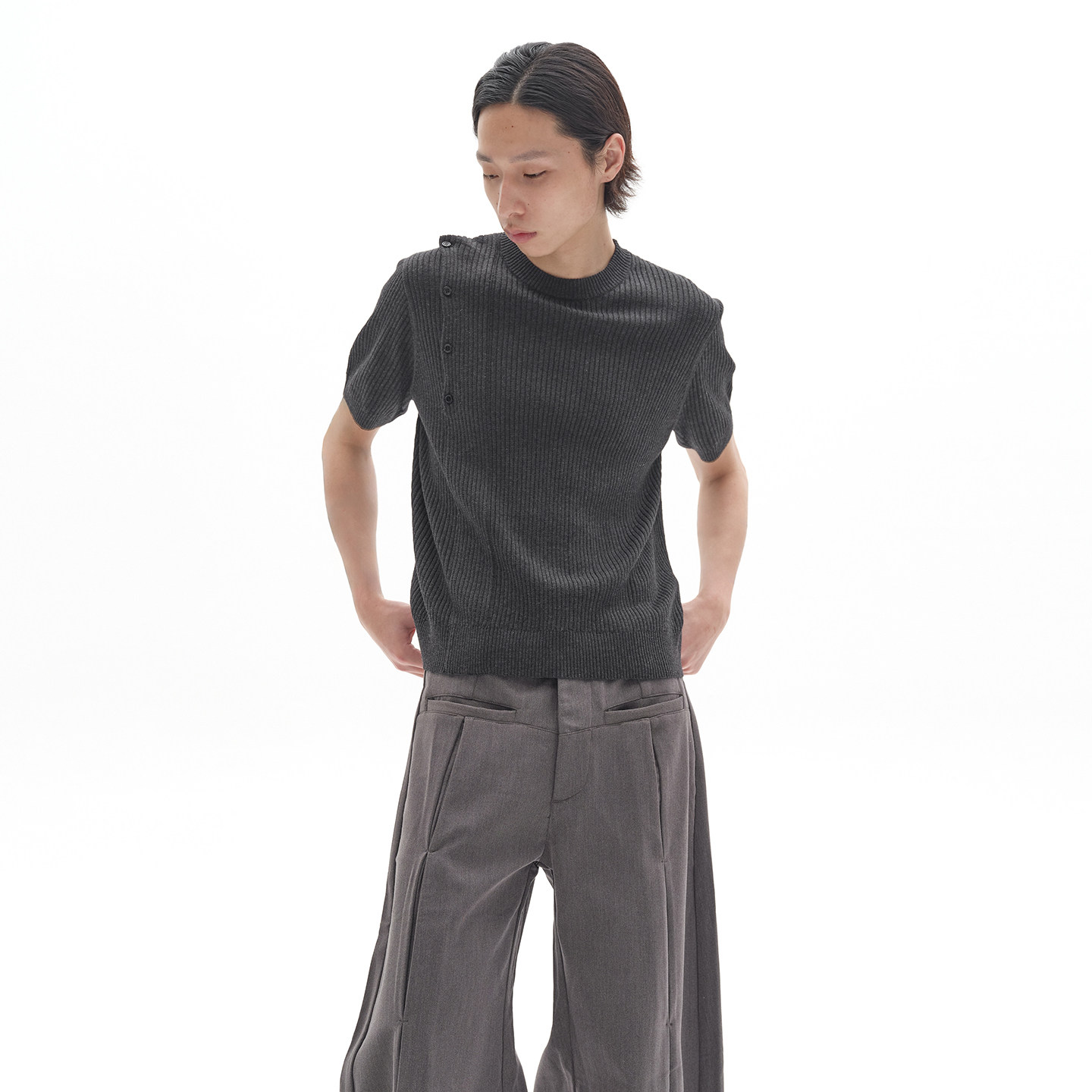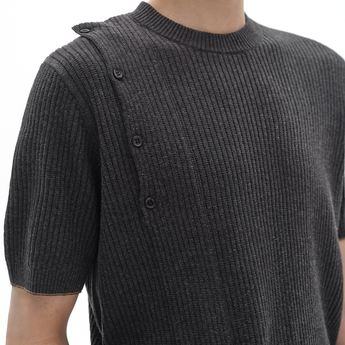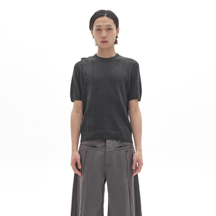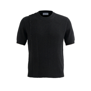螺纹袖 摆 针织短袖 KNIT 针织斜扣 TEE 老钱风格 POH 知识分子