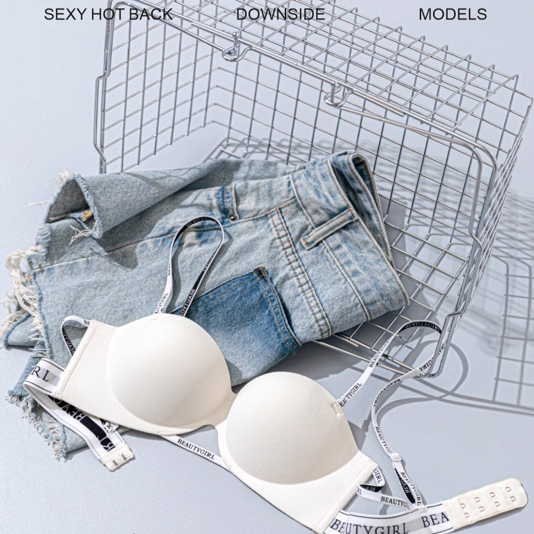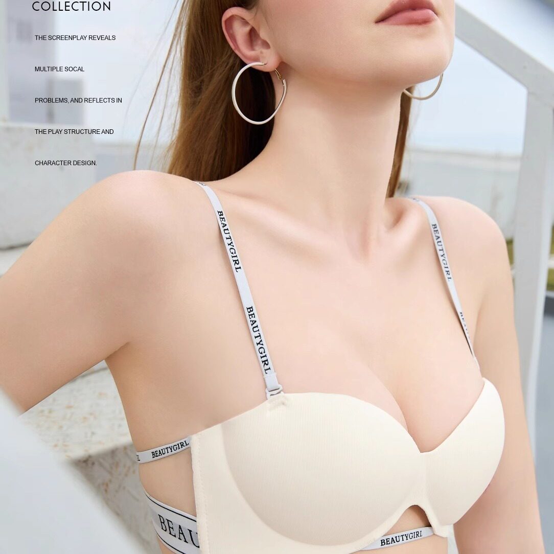 半杯内衣女小胸聚拢显大无钢圈上托大露背时尚 字母肩带美背文胸罩
