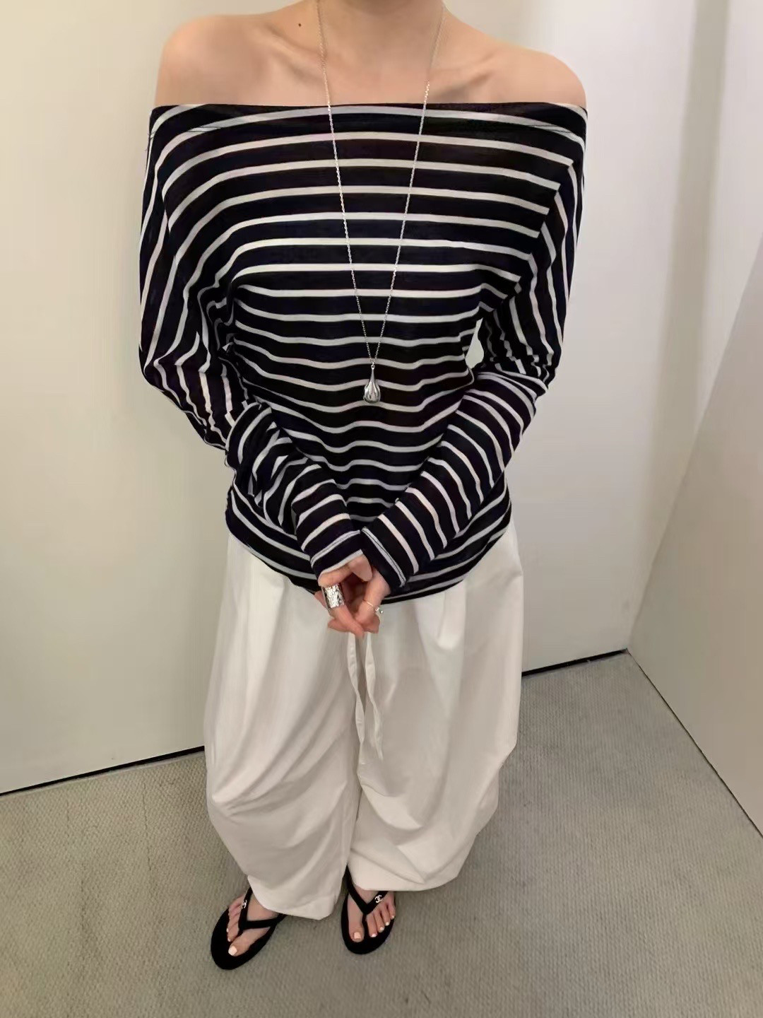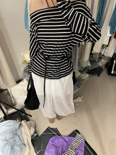 韩系一字肩高级感露锁骨天丝防晒T恤女法式 冷淡系独特别 掐腰罩衫