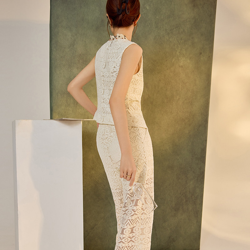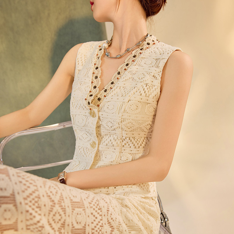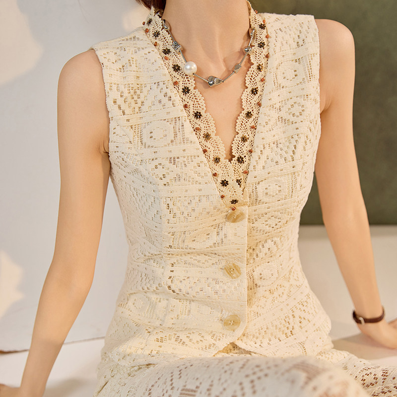 女 套装 N4031 复古高级感穿搭漂亮轻奢镂空V领设计背心长裤 新中式